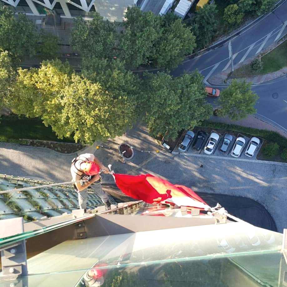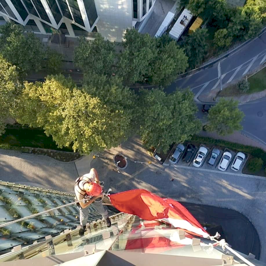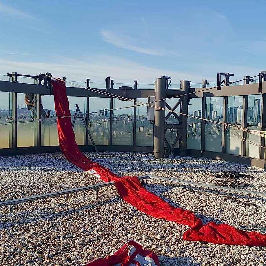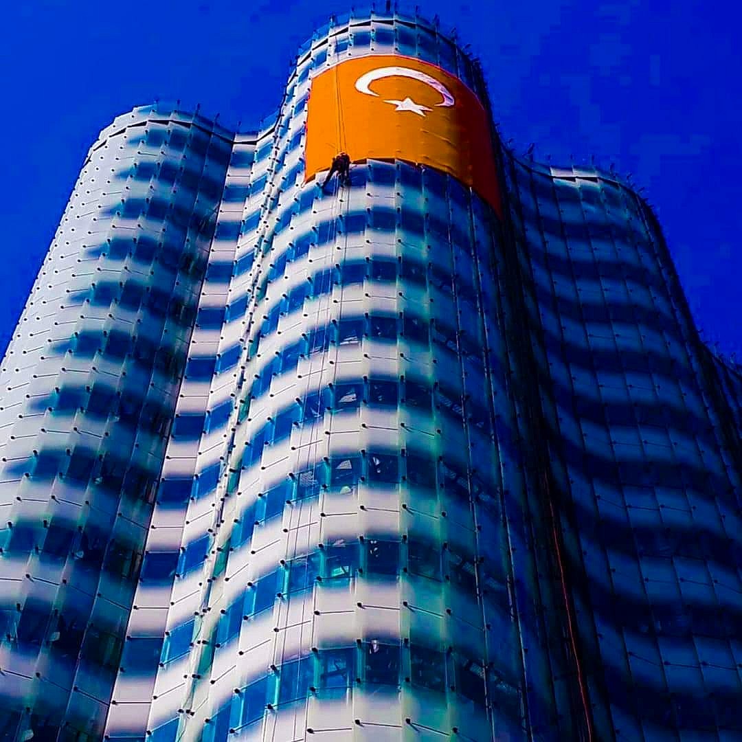 Boyutu ne olursa olsun istenilen yüksekliğe veya derinliğe reklam branda afiş asma endüstriyel dağcılık tekniği ile ekonomik ve hızlı bir şekilde montajını yapıyoruz.