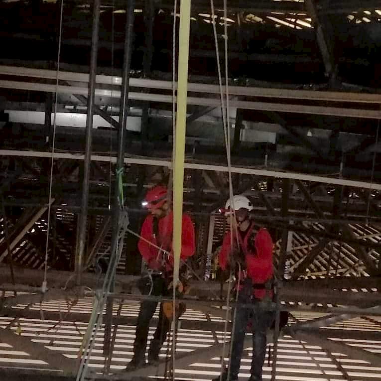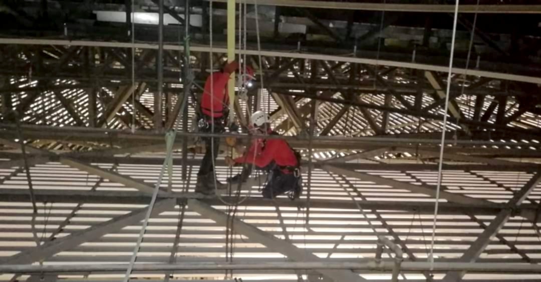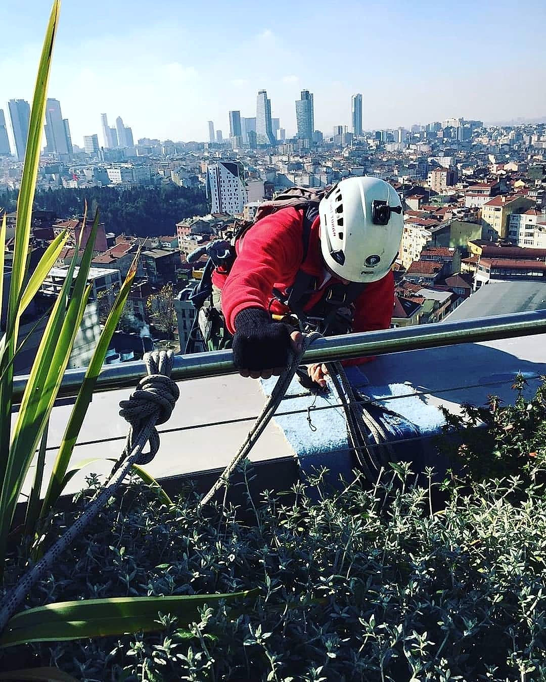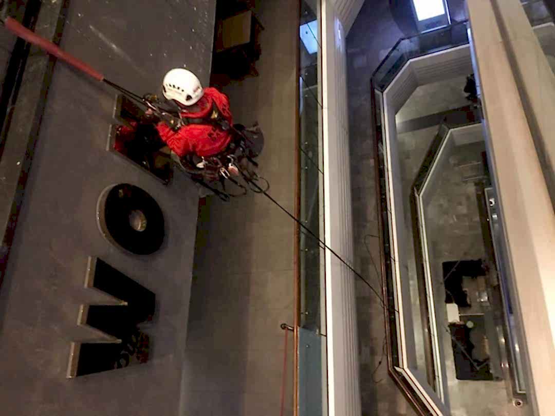 İş, her türlü hava koşulunda binaların çatılarına ve cephelerine yüksek kaliteli reklam yerleştirilmesine izin veren profesyonel dağcılar tarafından gerçekleştirilir.